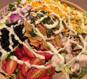 Apple, avocado, bell pepper, black olives, black beans, broccoli, carrot, lemon chickpeas, cilantro, corn, cucumber, edamame, egg, grilled veggie medley, jalapeƱos, mandarins, pickled red onion, red onion, pickled red cabbage, sauteed mushrooms, tomato. Includes one protein, one cheese, one crunch and four veggies, fruits, or pasta. Order from art of salad and 81,000+ others.