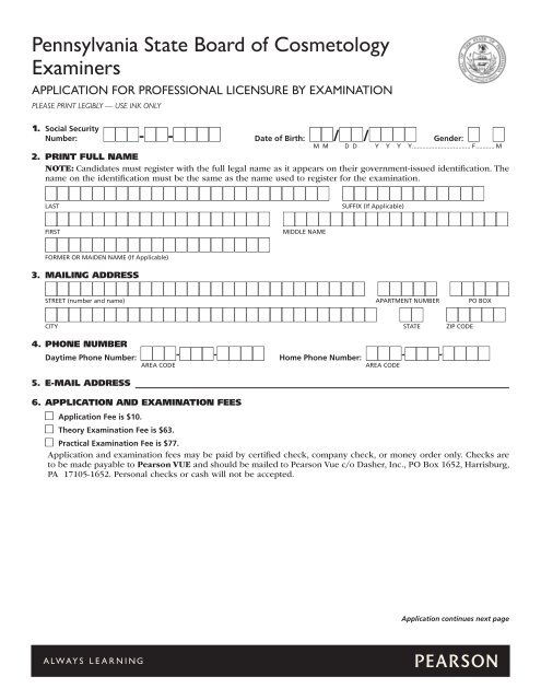 Pennsylvania State Board Of Cosmetology Examiners - Pearson Vue