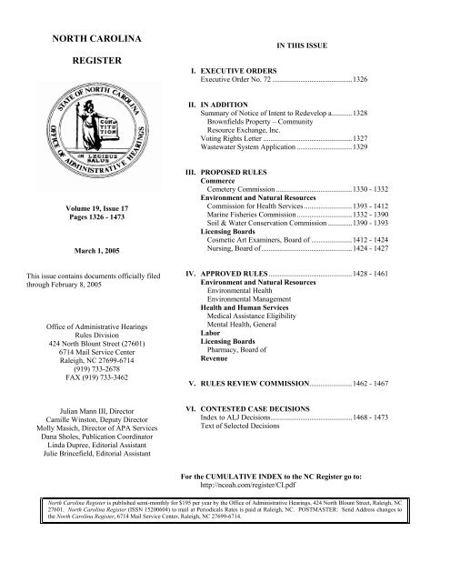 Nc Register Volume 19 Issue 17 - Office Of Administrative Hearings